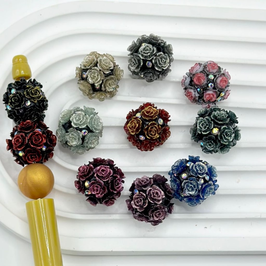 カラフルで輝くキラキラした花のABラインストーンブラックラウンドクレイビーズ、ランダムミックス、20MM