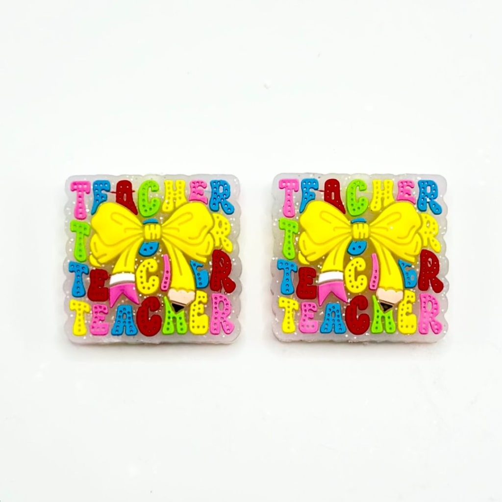 カラフルな先生用イエローペンシルリボン、キラキラ光るシリコンフォーカルビーズ