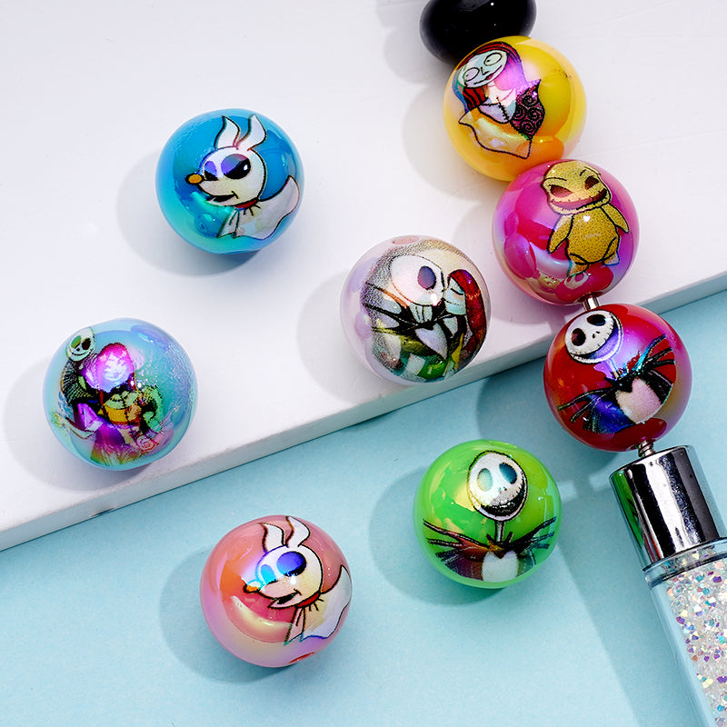 カラフルなジャック&サル「ナイトメアー・ビフォア・クリスマス」ラウンドアクリルビーズ、ランダムミックス、16mm