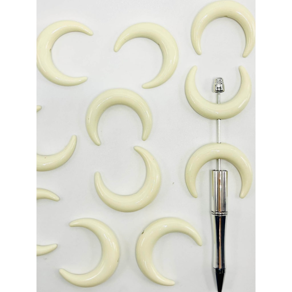 三日月アクリルビーズ、クリームホワイトベージュ、40mm×46mm、YY