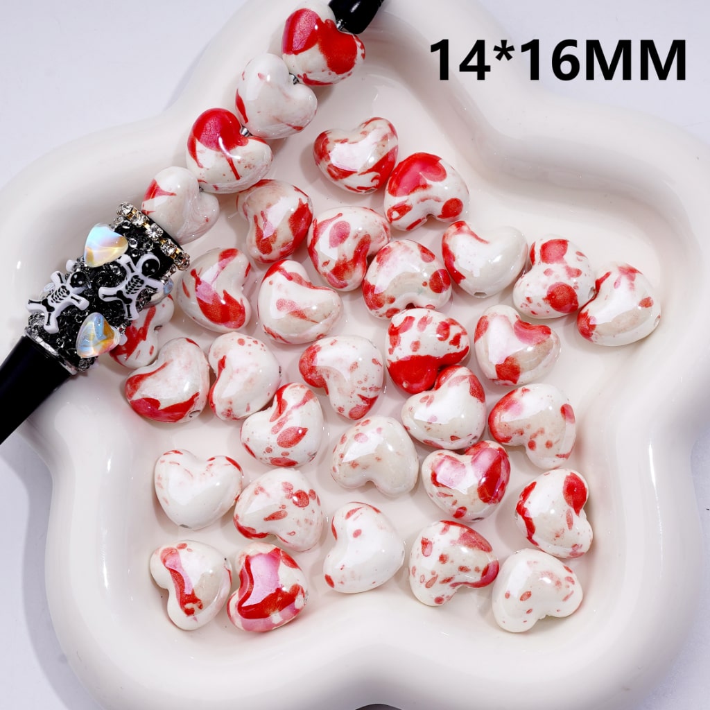 Creamic Porcelain Beads Halloween Series Red Vital Fluid Heart, White 14*16MM, Random Mix