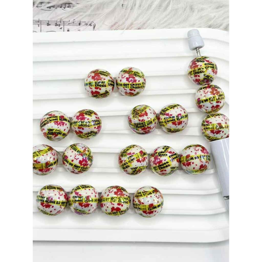 犯罪現場を横切るな血まみれの丸型アクリルビーズ、16mm