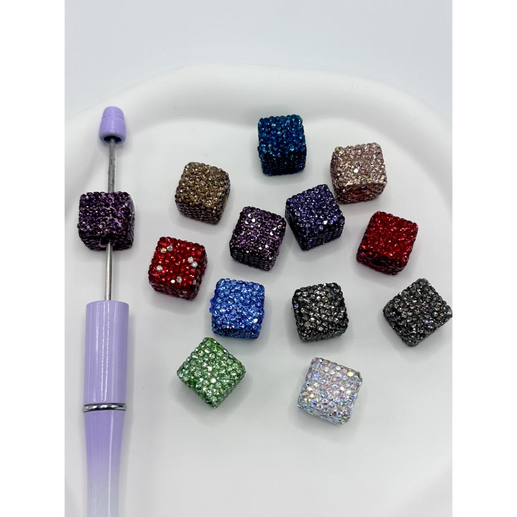 ペンにフィットするラインストーン付きキューブクレイビーズ(スクエア)各種カラー 14mm