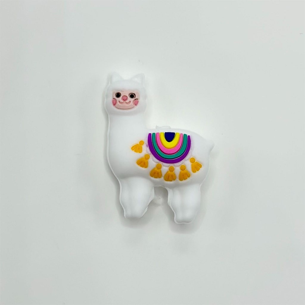 虹色の可愛いアルパカのショールスカーフ、黄色のペンダント付き、ラマの3Dシリコンフォーカルビーズ