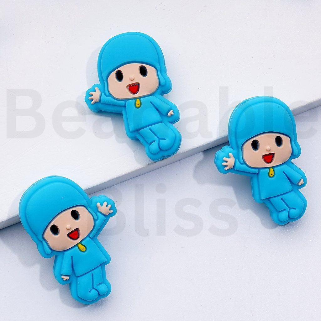 青い服を着たかわいい男の子のポコイ漫画シリコンフォーカルビーズ