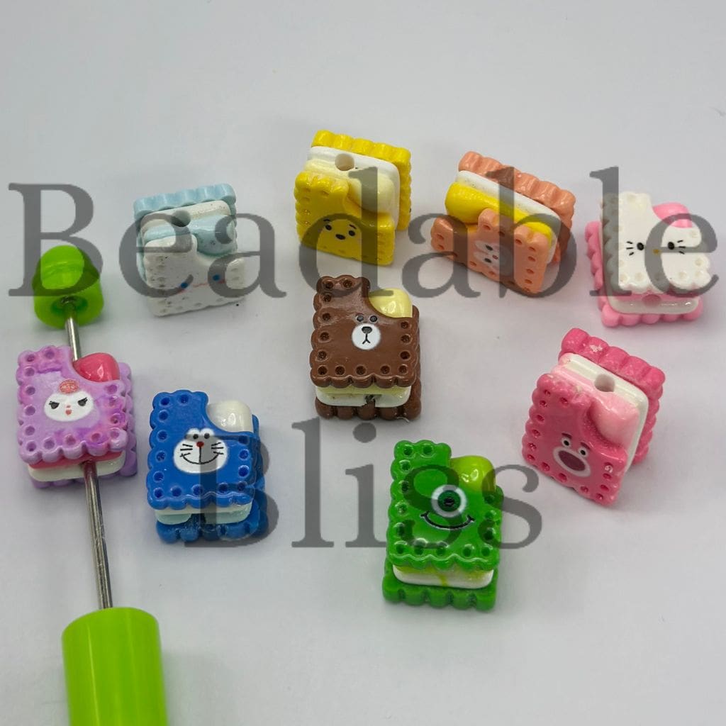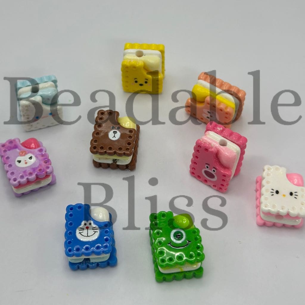 かわいい漫画の動物の友達の長方形のクッキービスケット、クリーム樹脂ビーズランダムミックス11 * 17mm