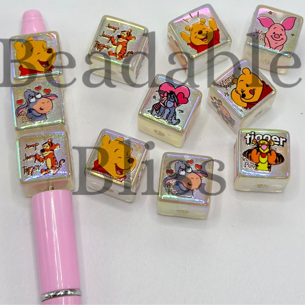 かわいい漫画クマ虎アクリルビーズキューブ型キラキラ16mm