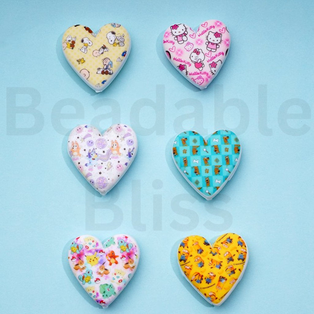 かわいい漫画のハート柄スヌープ・スコブ HK 子猫ミニオ ポケモ ブルーシリコンフォーカルビーズ