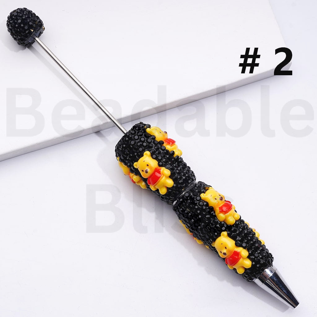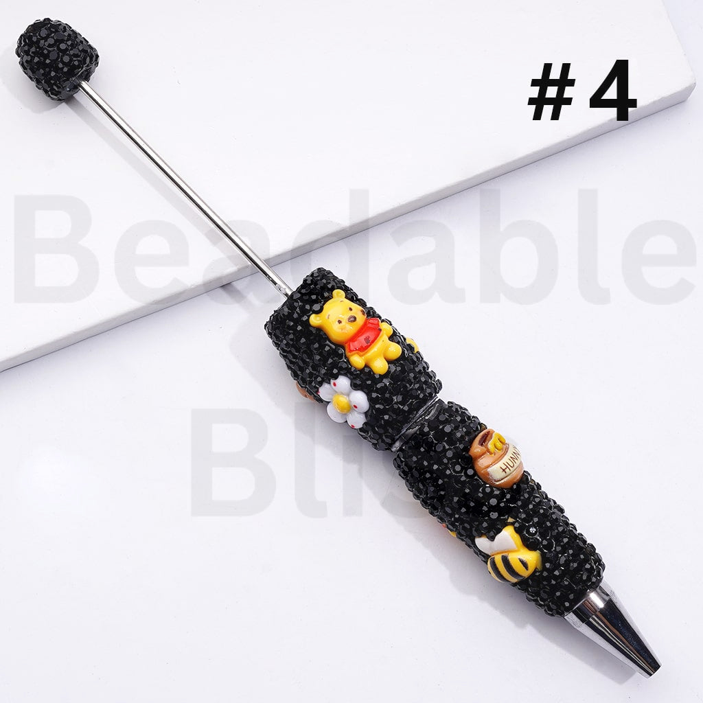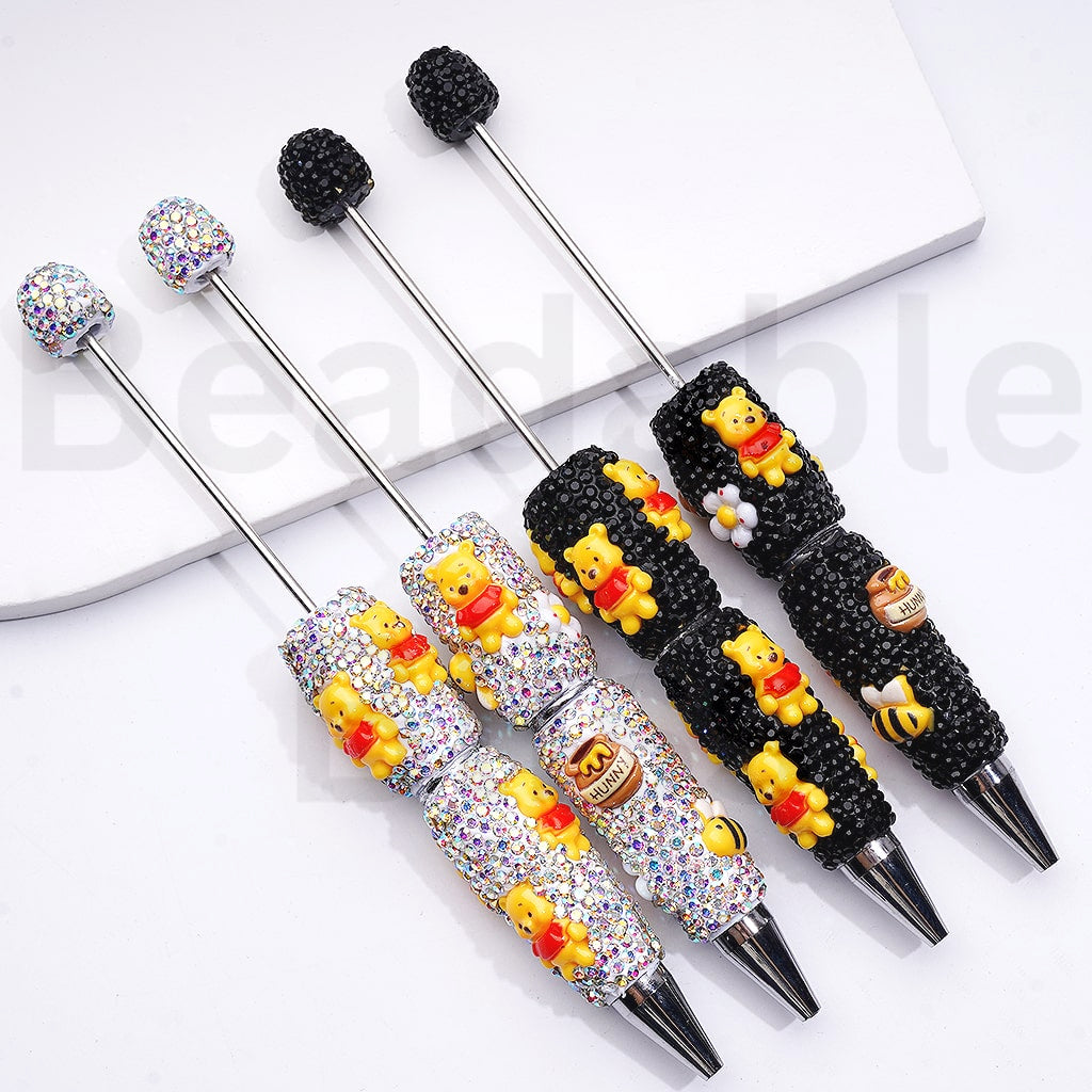 Cute Chubby Cartoon Bear Bee Flower Bunny Pot Black & AB Rhinestones Beadable Clay Pens