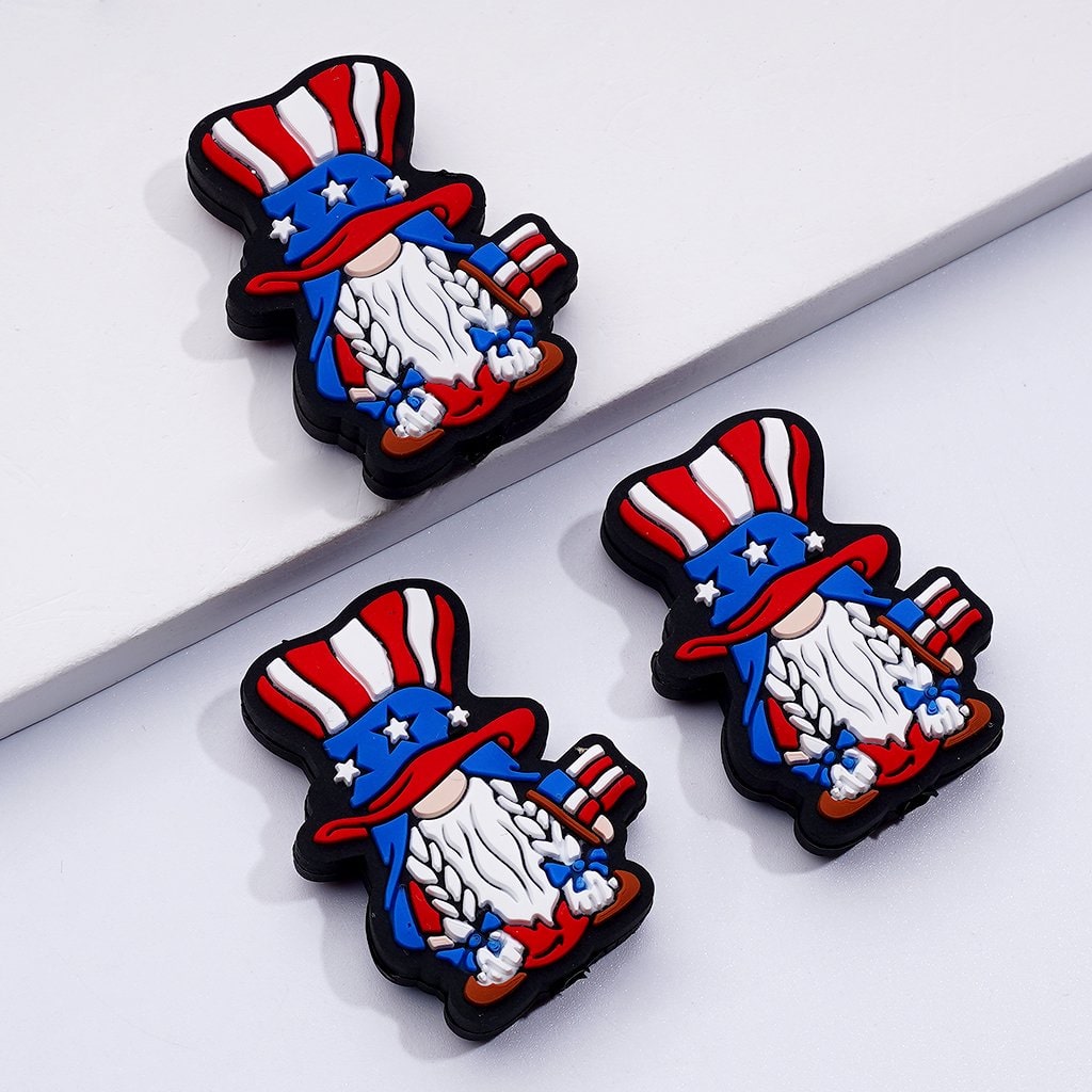 アメリカ国旗風の帽子をかぶった可愛いノーム、愛国心あふれるシリコン製フォーカルビーズ