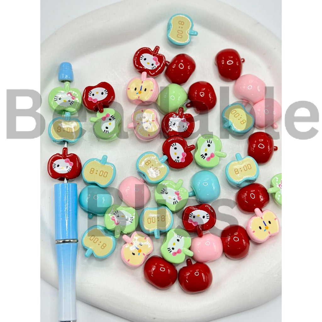 キュートなハーフアップルのカラフルプリントアクリルビーズ、ランダムミックス、8×9MM