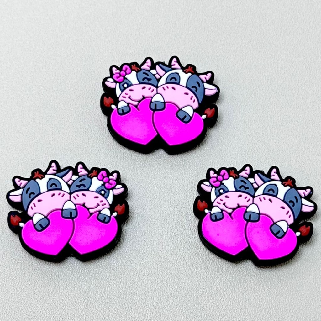 かわいい雄牛と雌牛が赤いハートを持つバレンタインデーのシリコンフォーカルビーズ