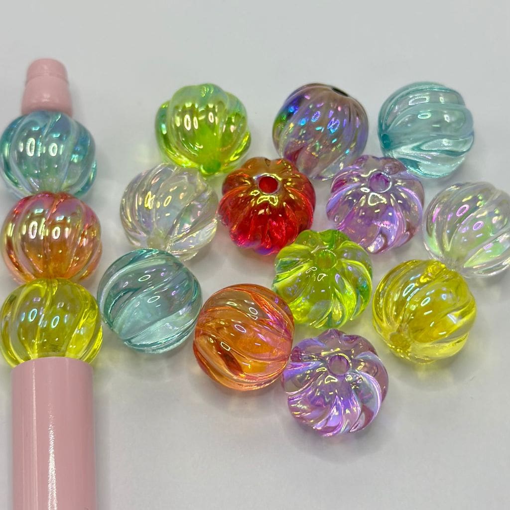 かわいいカボチャ型のアクリルビーズ テクスチャ付き 光沢 UV仕上げ 16mm ランダムミックス