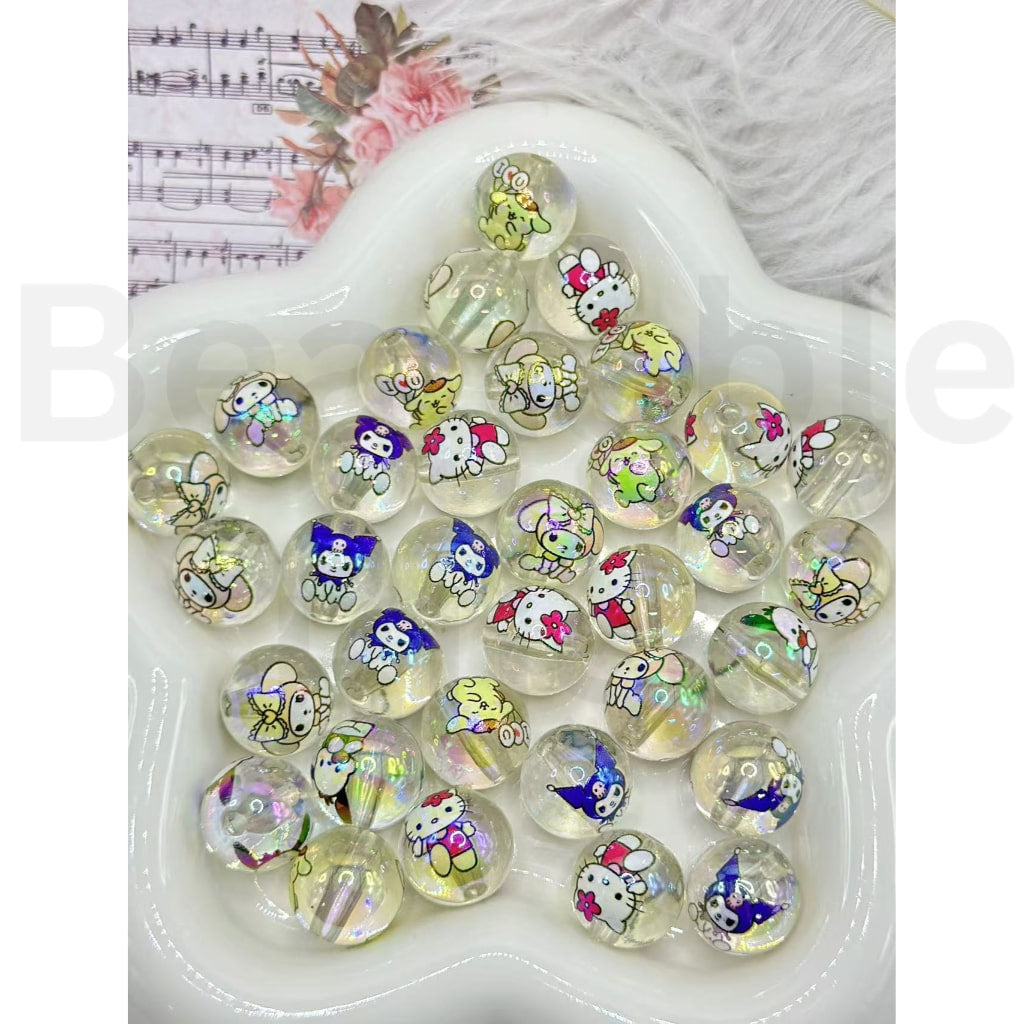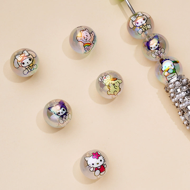かわいいサンリHK子猫クロムポンポンメロディポチャック漫画透明ラウンドアクリルビーズ、ランダムミックス、16MM