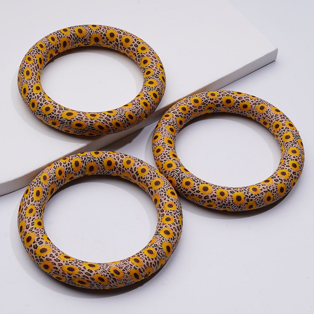 Cute Sun Flower Jaguar Prints Silicone Ring Frame Bead Circle Round Soft Car Hanger Charm Loop 65mm