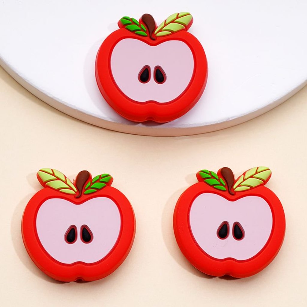 キュートで鮮やかな赤いリンゴのシリコン製フォーカルビーズ
