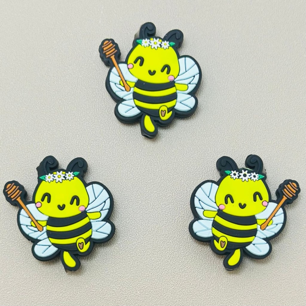 かわいい黄色の蜂が小さな棒を持ったシリコンフォーカルビーズ