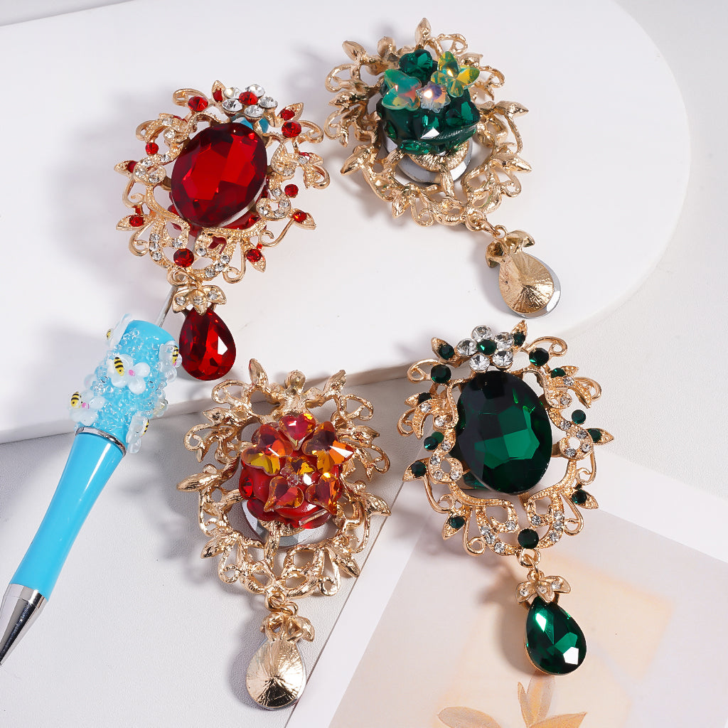 | 繊細なファンシーゴールド合金の花と光沢のあるラインストーン、大きな赤い楕円形のラインストーンの内側のペンダント、光沢のあるハートの白い真珠、丸い粘土ビーズ、約50×82MM |