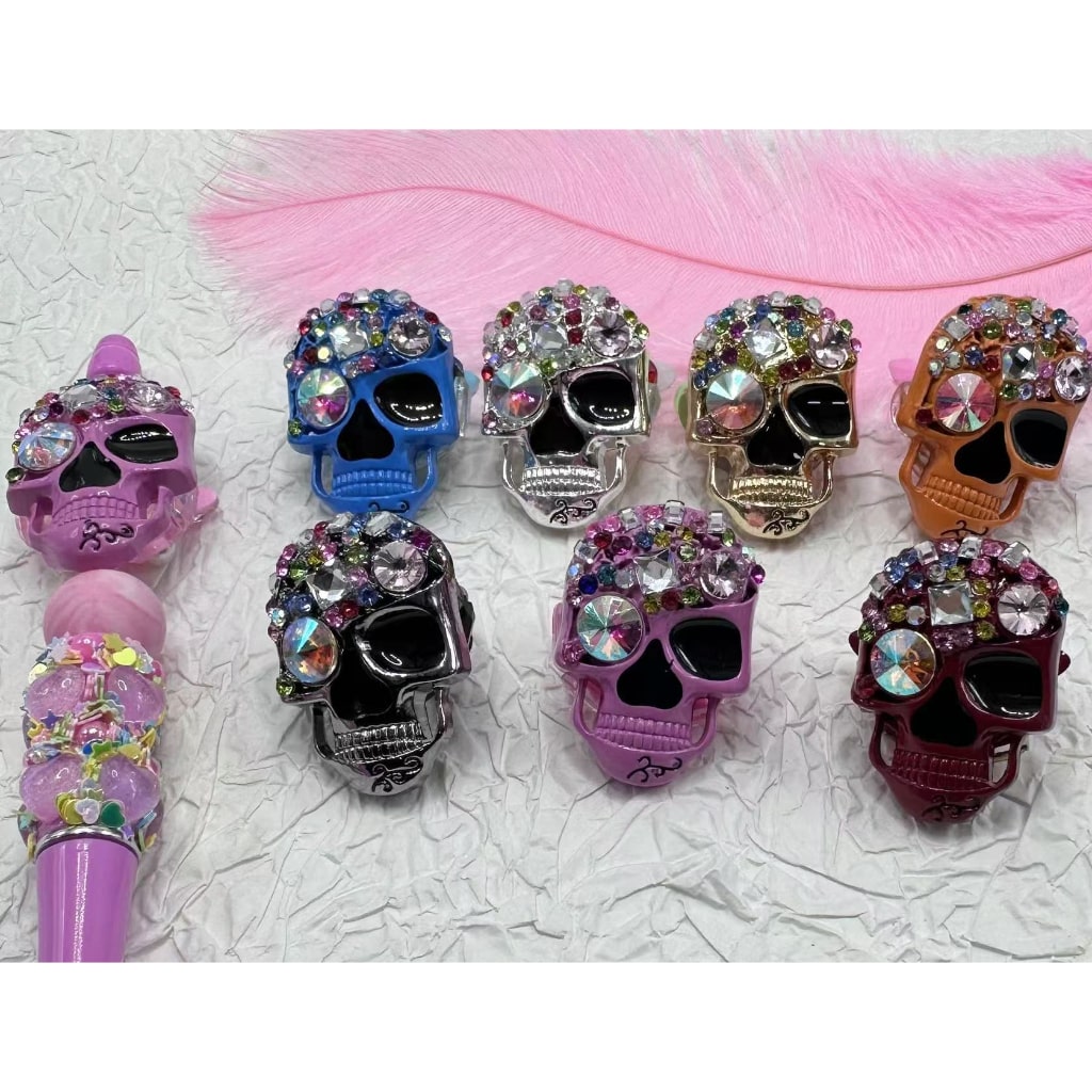 繊細なマルチカラー合金スケルトンスカルヘッド、カラフルな光沢のあるラインストーン、ホワイトパール、ハートダイヤモンドクレイビーズ、ランダムミックス、約37×26MM。説明をお読みください。