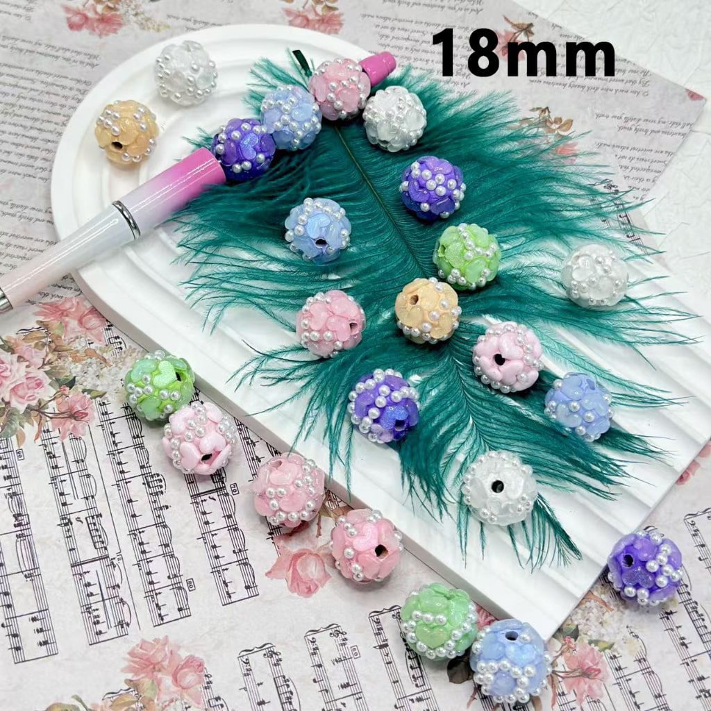 繊細なマルチカラーのキラキラハートのホワイトパールラウンドクレイビーズ、ランダムミックス、18mm