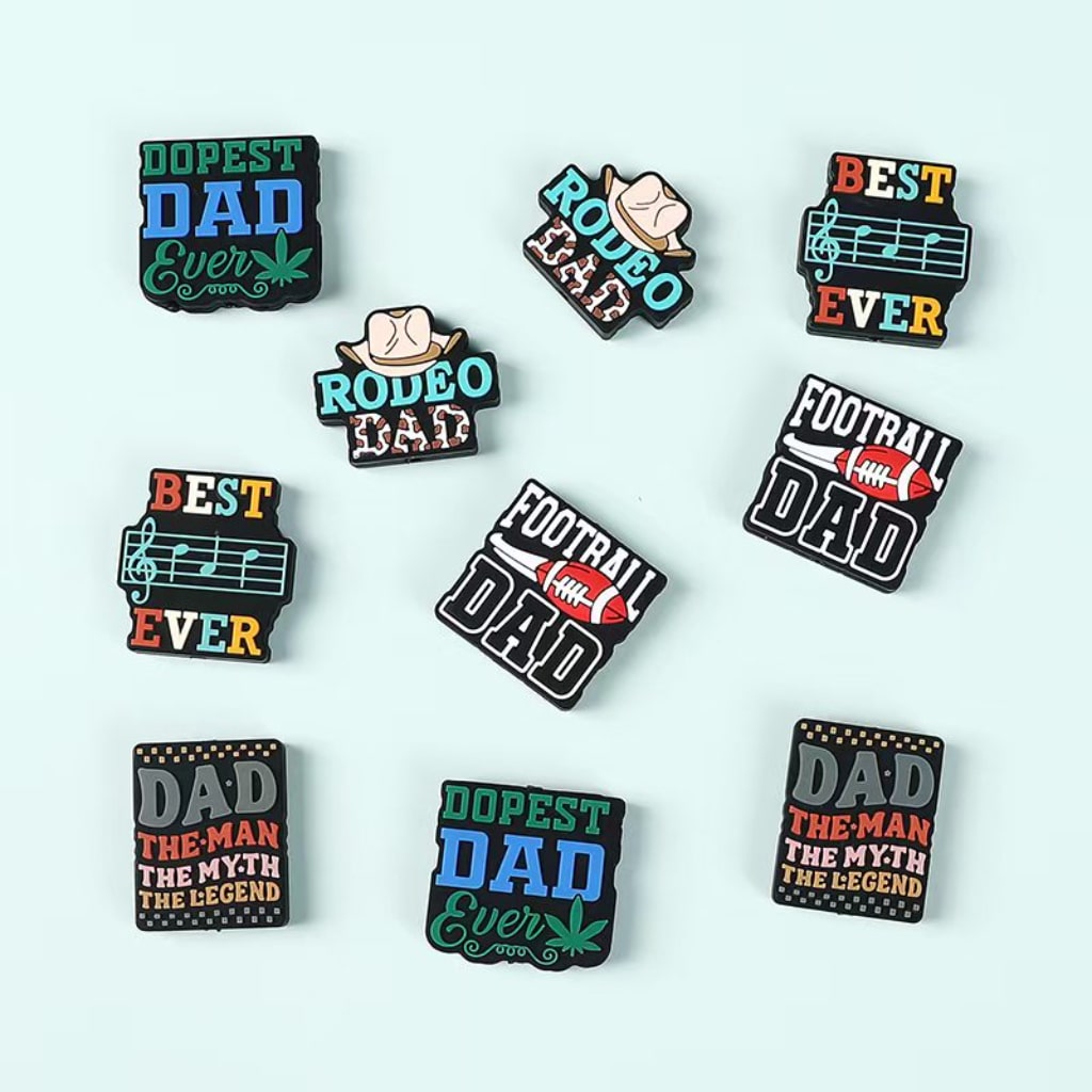 最高にクールなパパ、フットボールパパ、最高の音楽パパ、カウボーイ、ロデオパパ、伝説のパパ、父、シリコンフォーカルビーズ