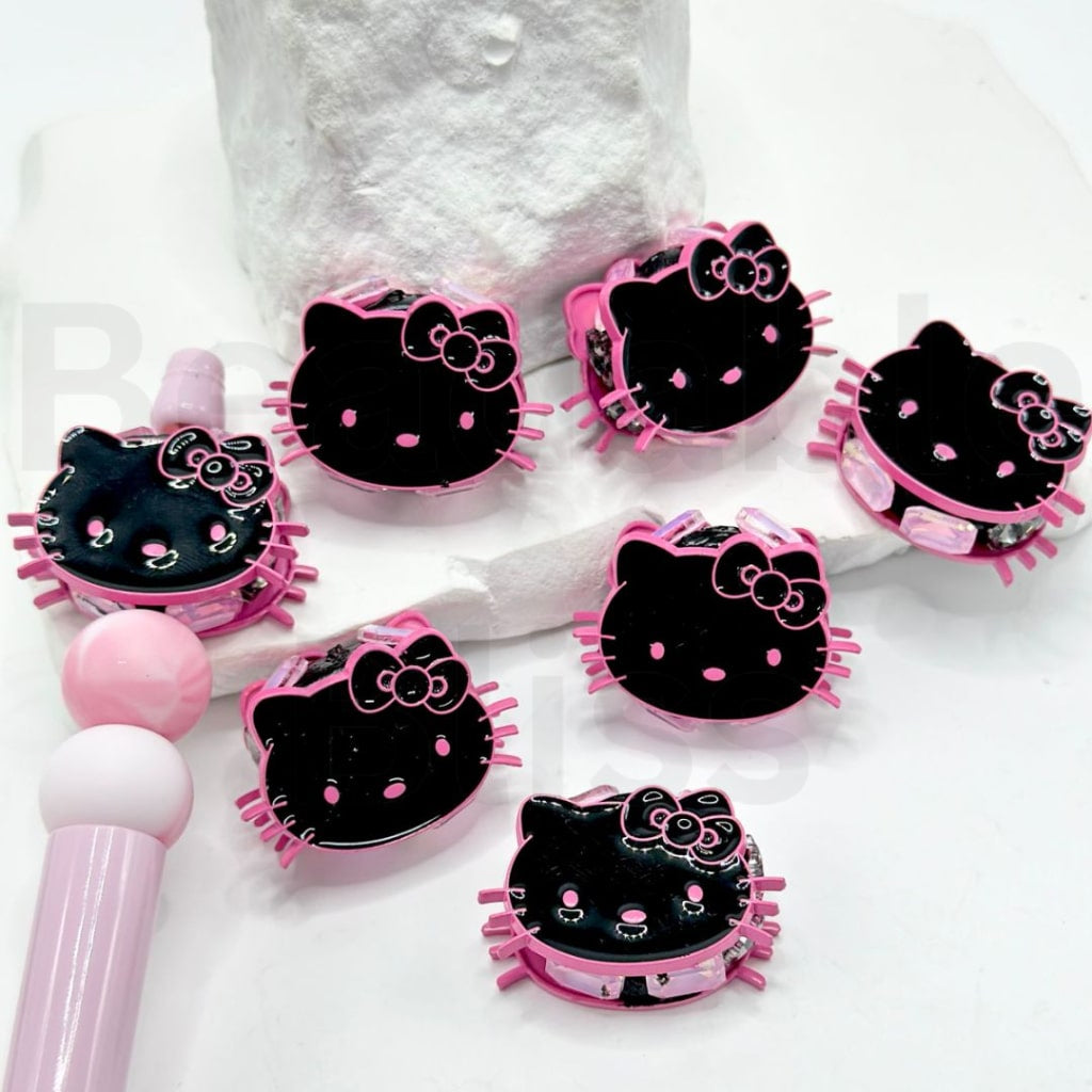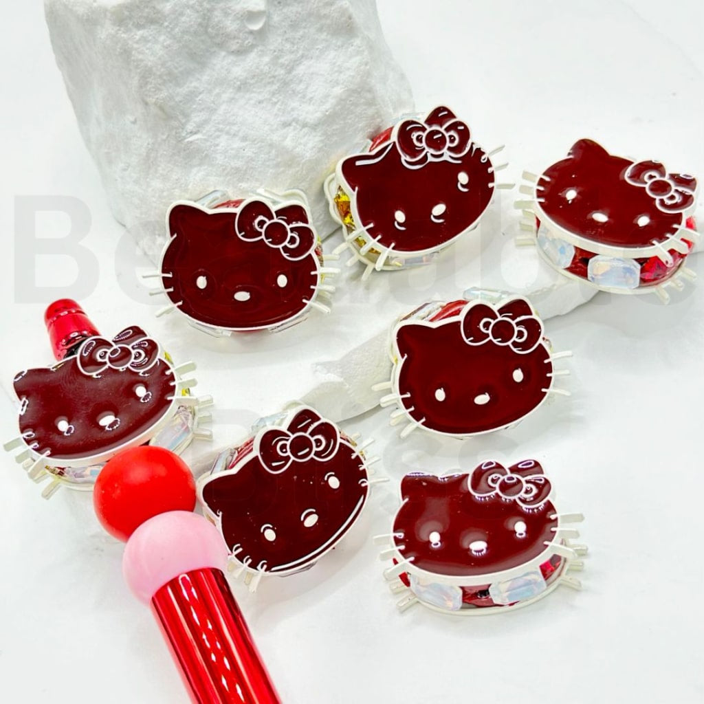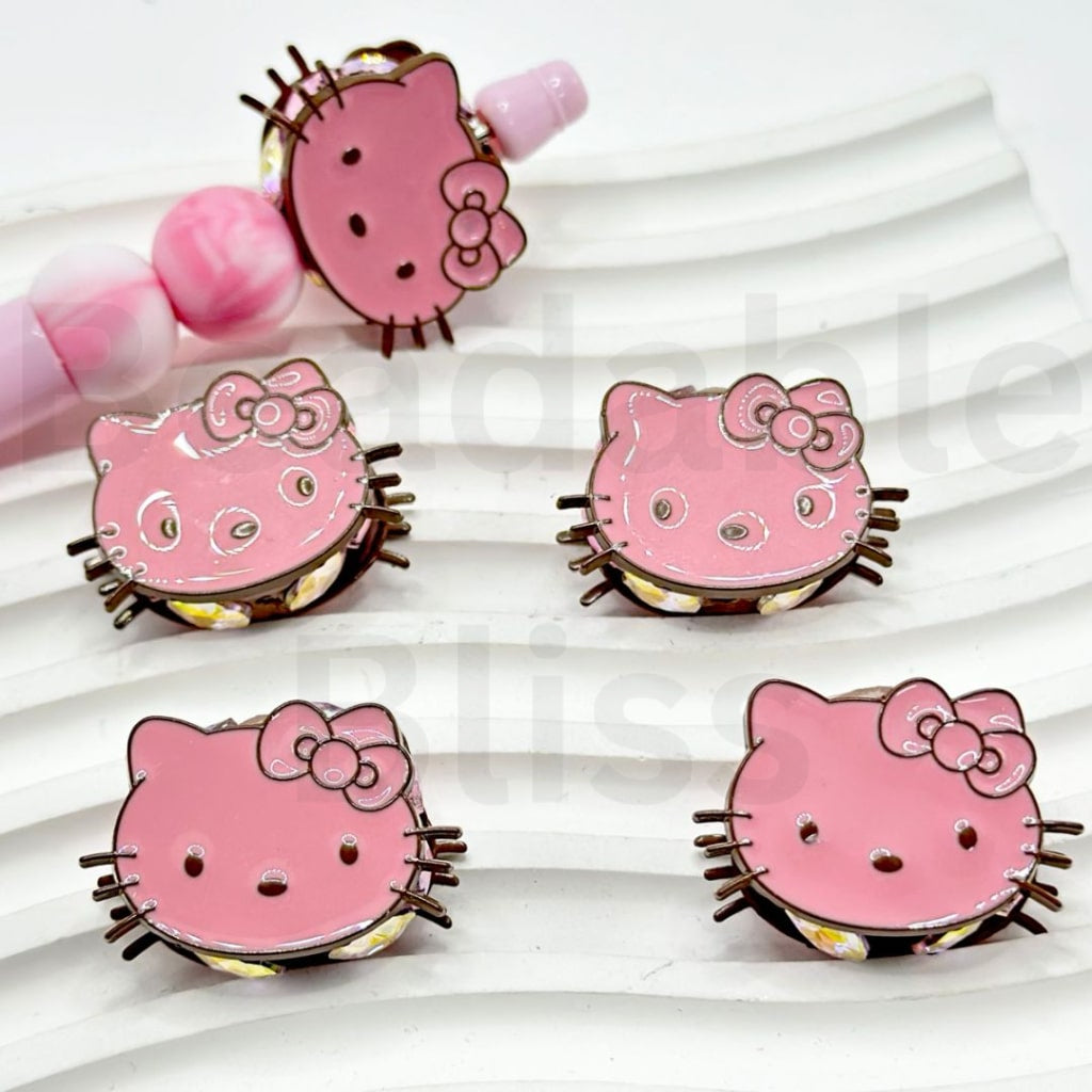 絶妙なカラフルな合金製サンリHK子猫の頭、光沢のあるラインストーン粘土ビーズ付き、約32×22MM