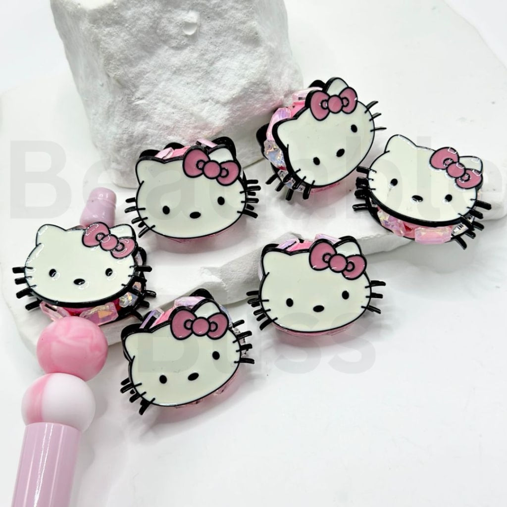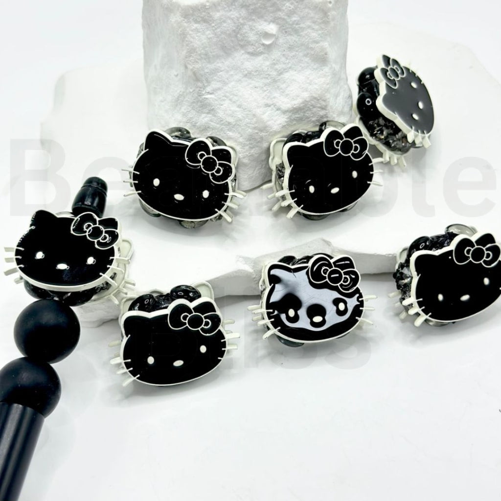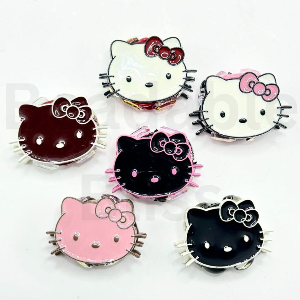 絶妙なカラフルな合金製サンリHK子猫の頭、光沢のあるラインストーン粘土ビーズ付き、約32×22MM
