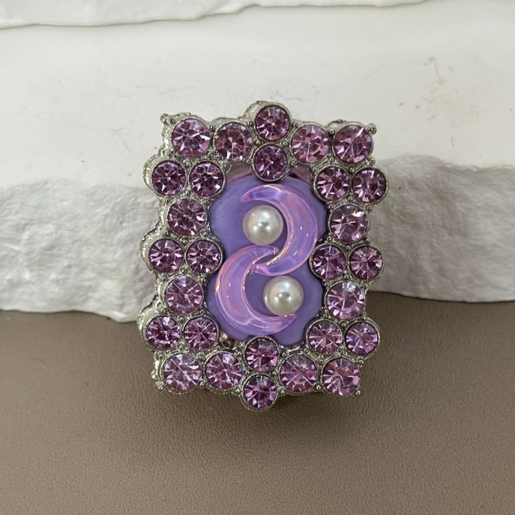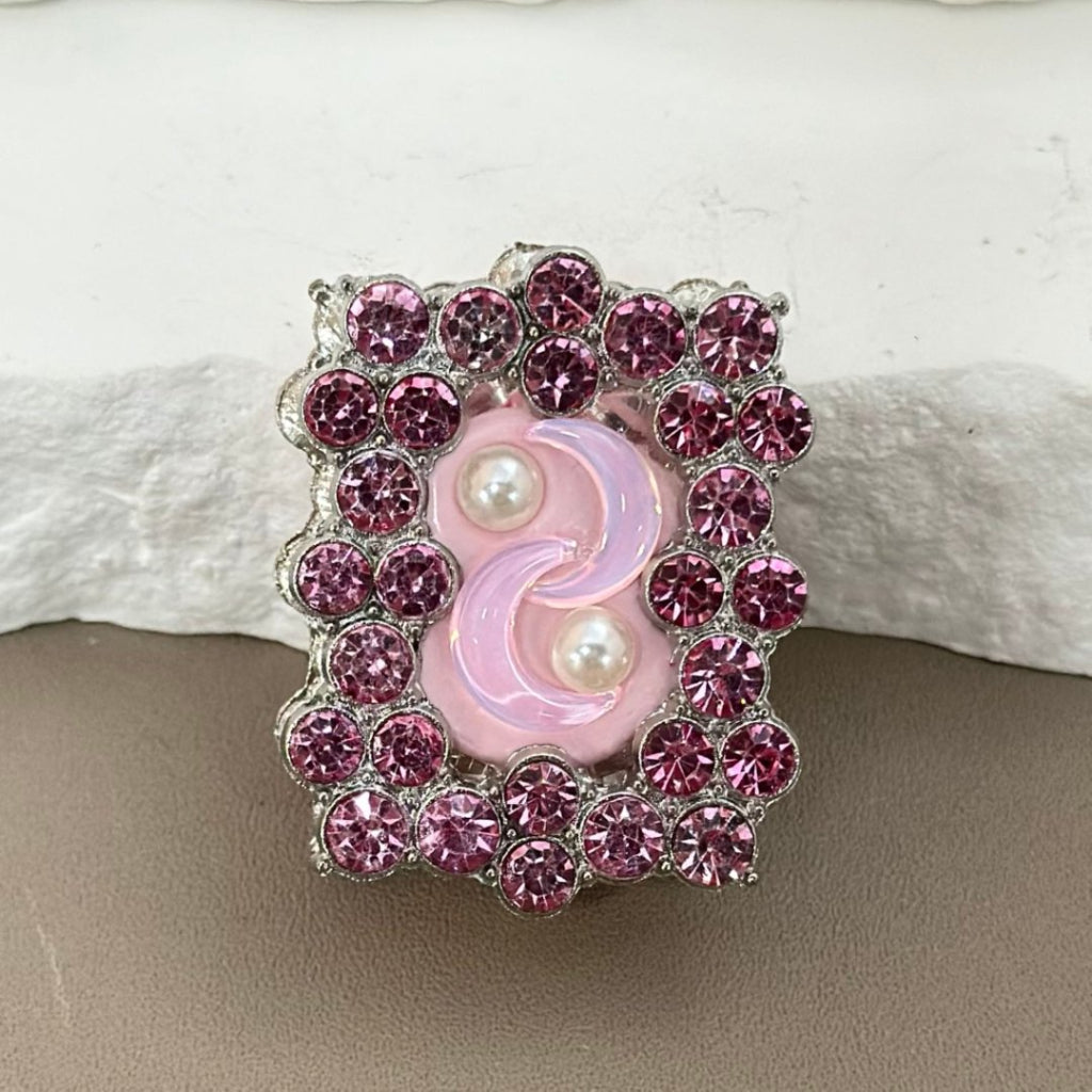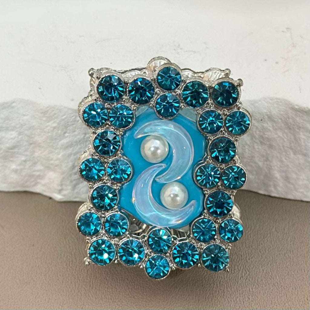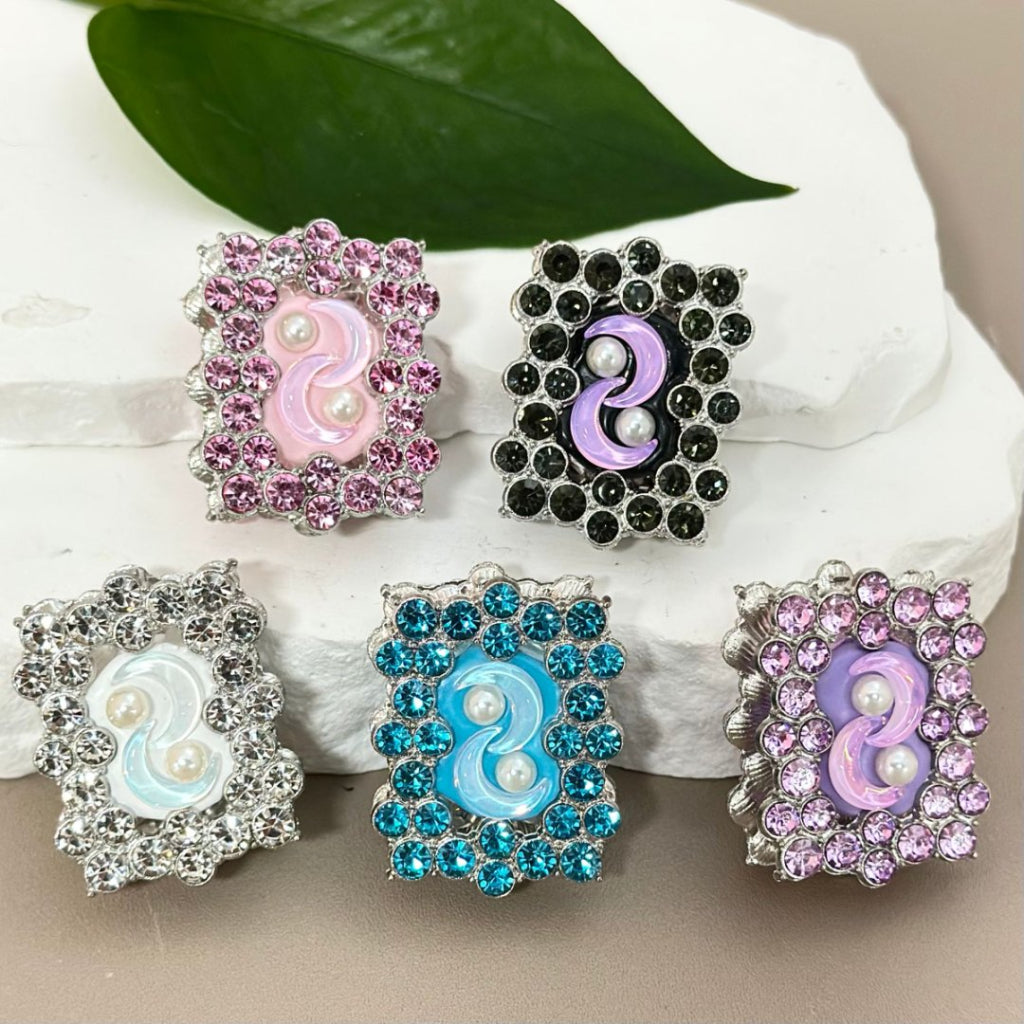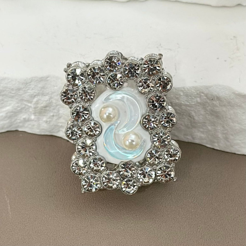 絶妙なファンシーシルバー合金長方形フレーム、カラフルなラインストーン、ホワイトパール、透明な三日月粘土ビーズ、約37×29MM