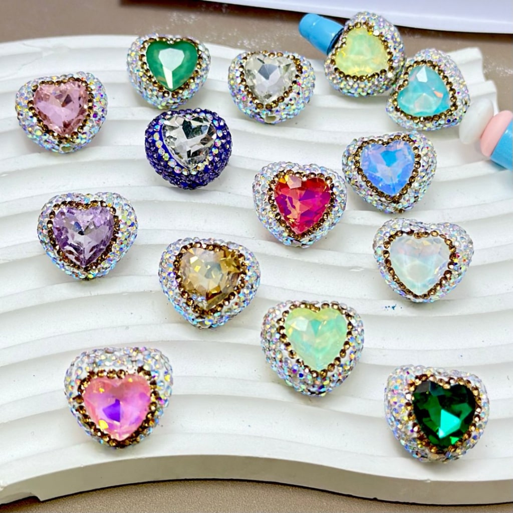 派手なキラキラ光るホワイトハートクレイビーズ、大きなカラフルなハートラインストーン付きミニABラインストーン、約20×17MM