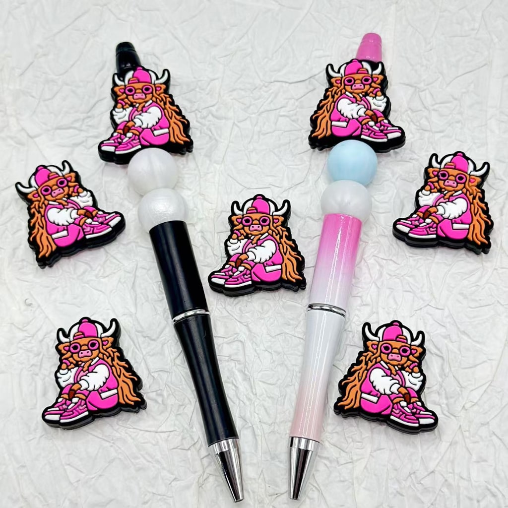 メガネをかけた赤と白のおしゃれな可愛い牛のシリコン製フォーカルビーズ