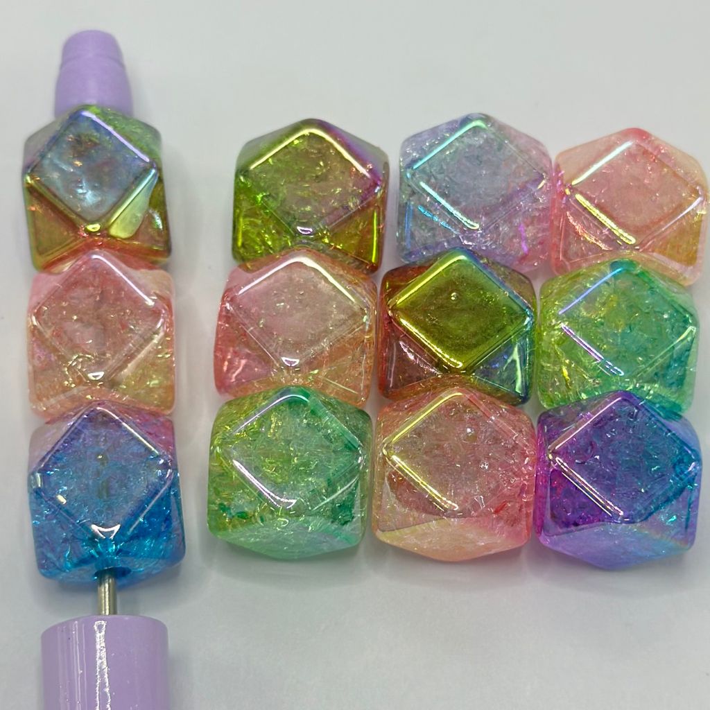 クラックルレインボーアクリルビーズ UV仕上げ 六角形 マルチカラー オンブル 14*15.5 mm ランダムミックス