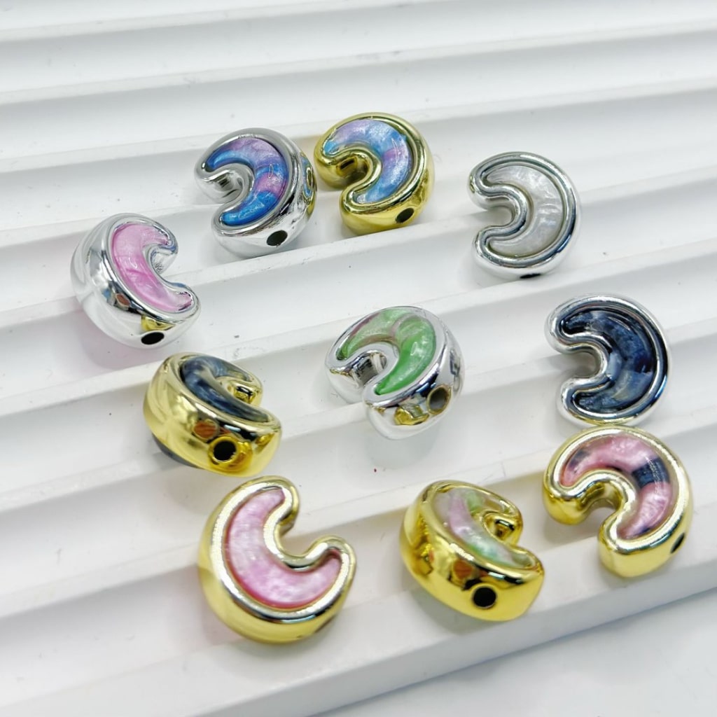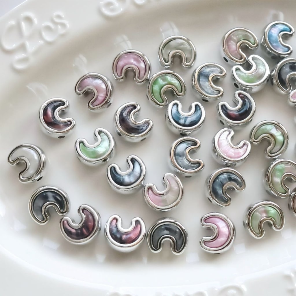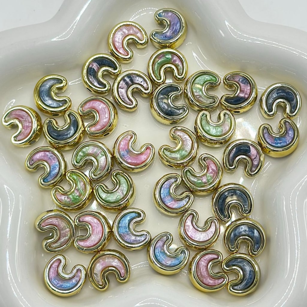 ゴールドシルバーカラーの三日月アクリルビーズ、カラフルなラインストーン入り、15×13MM