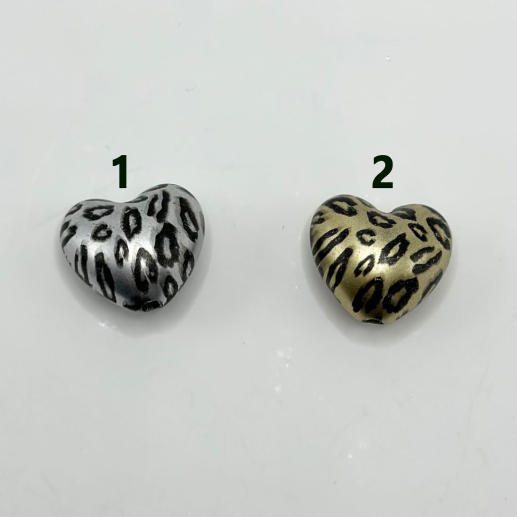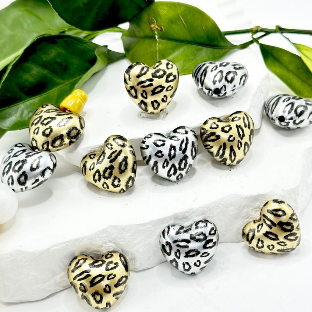 ジャガープリントのゴールドシルバーメタリックマットカラーハートアクリルビーズ、19×21MM