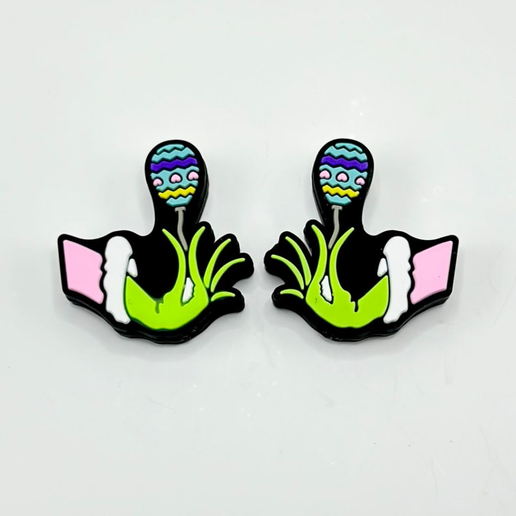 緑のモンスター、グリンクがカラフルなイースターエッグシリコンフォーカルビーズを持っている