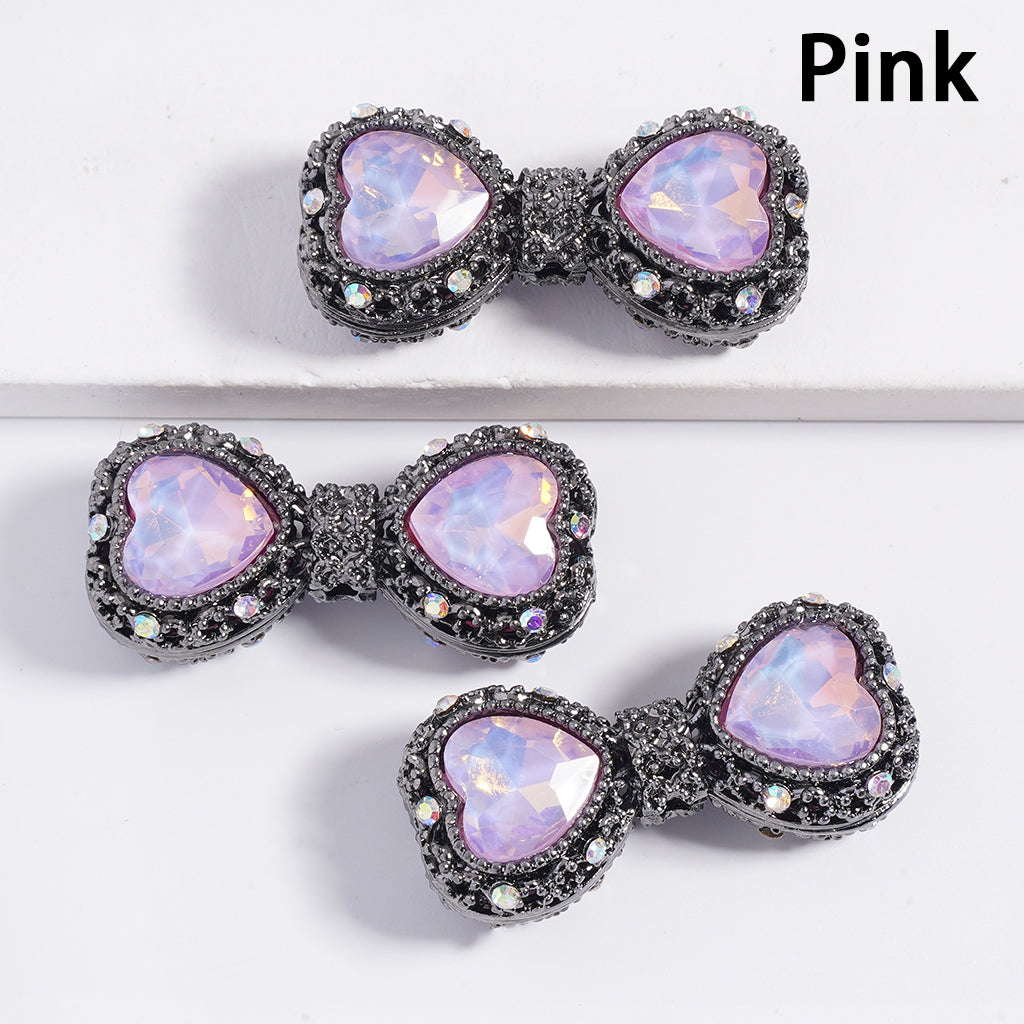 ガンブラック 蝶結び型 中空合金アクリルビーズ ハートラインストーン付き 34MM x 17MM |