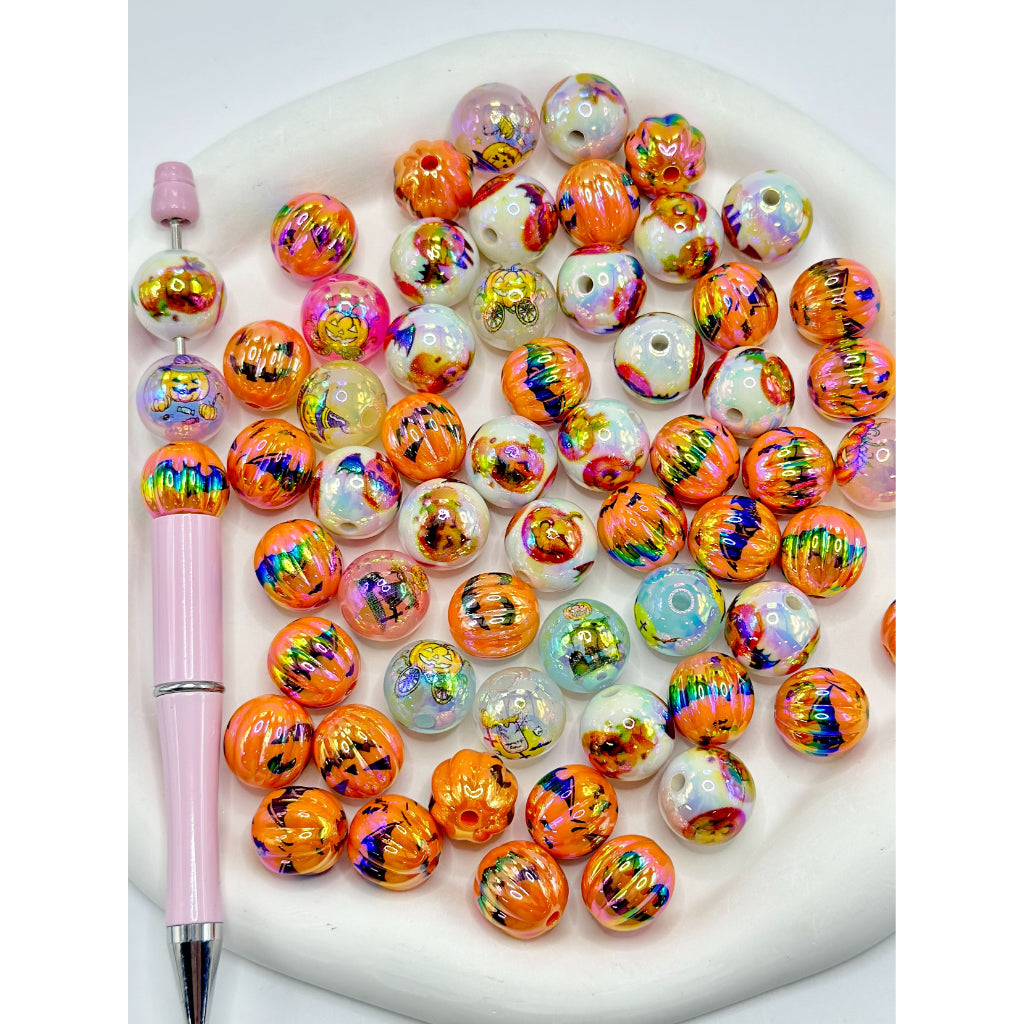 ハロウィン パンプキン コウモリ ラウンド アクリル ビーズ ランダムミックス 16mm