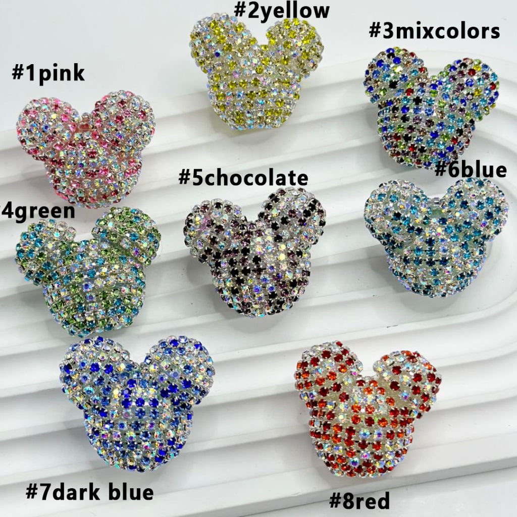 クリアマウスヘッドアクリルビーズ、カラフルなラインストーン付き、ランダムミックス、31MM×29MM