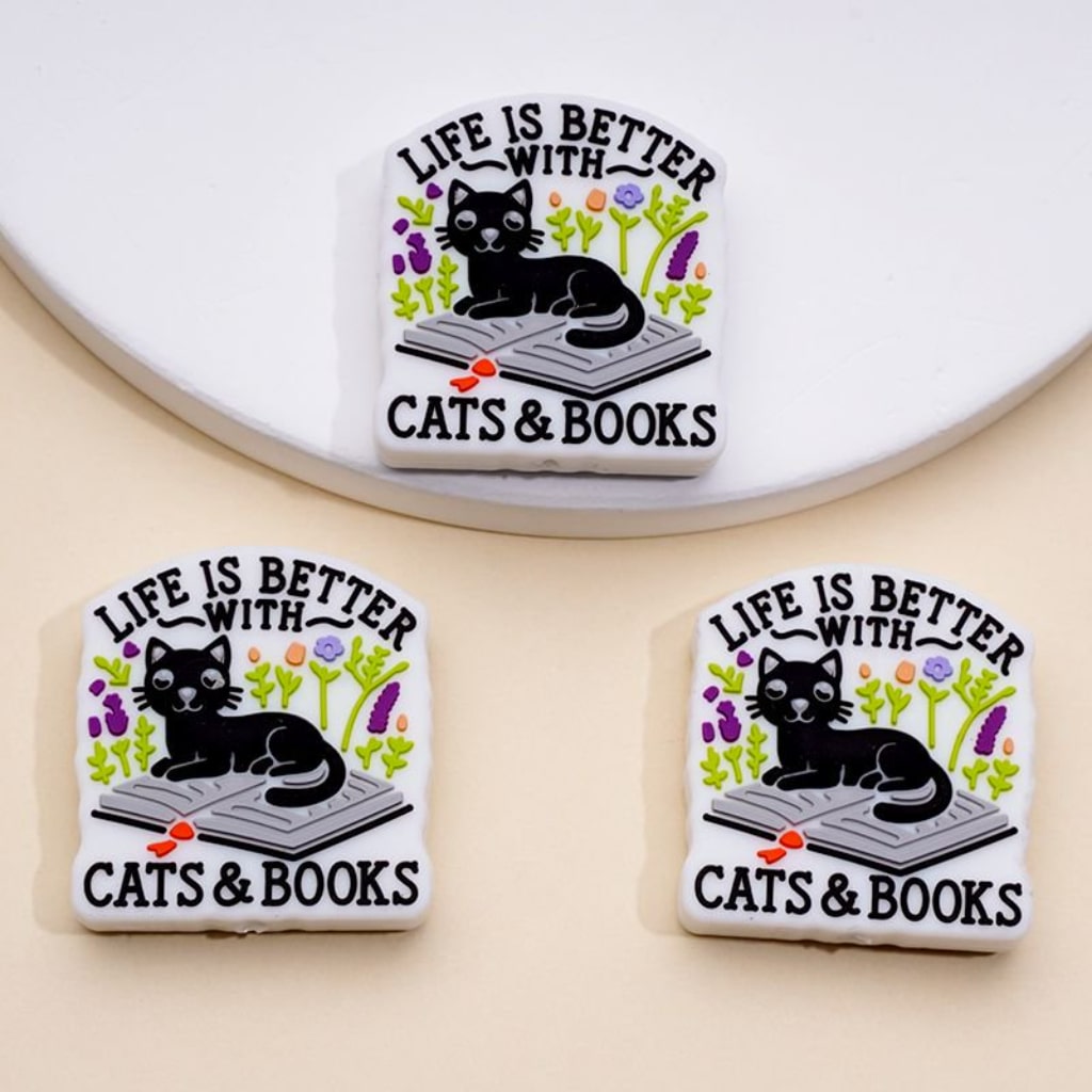 猫と本があれば人生はもっと楽しくなるシリコンフォーカルビーズ