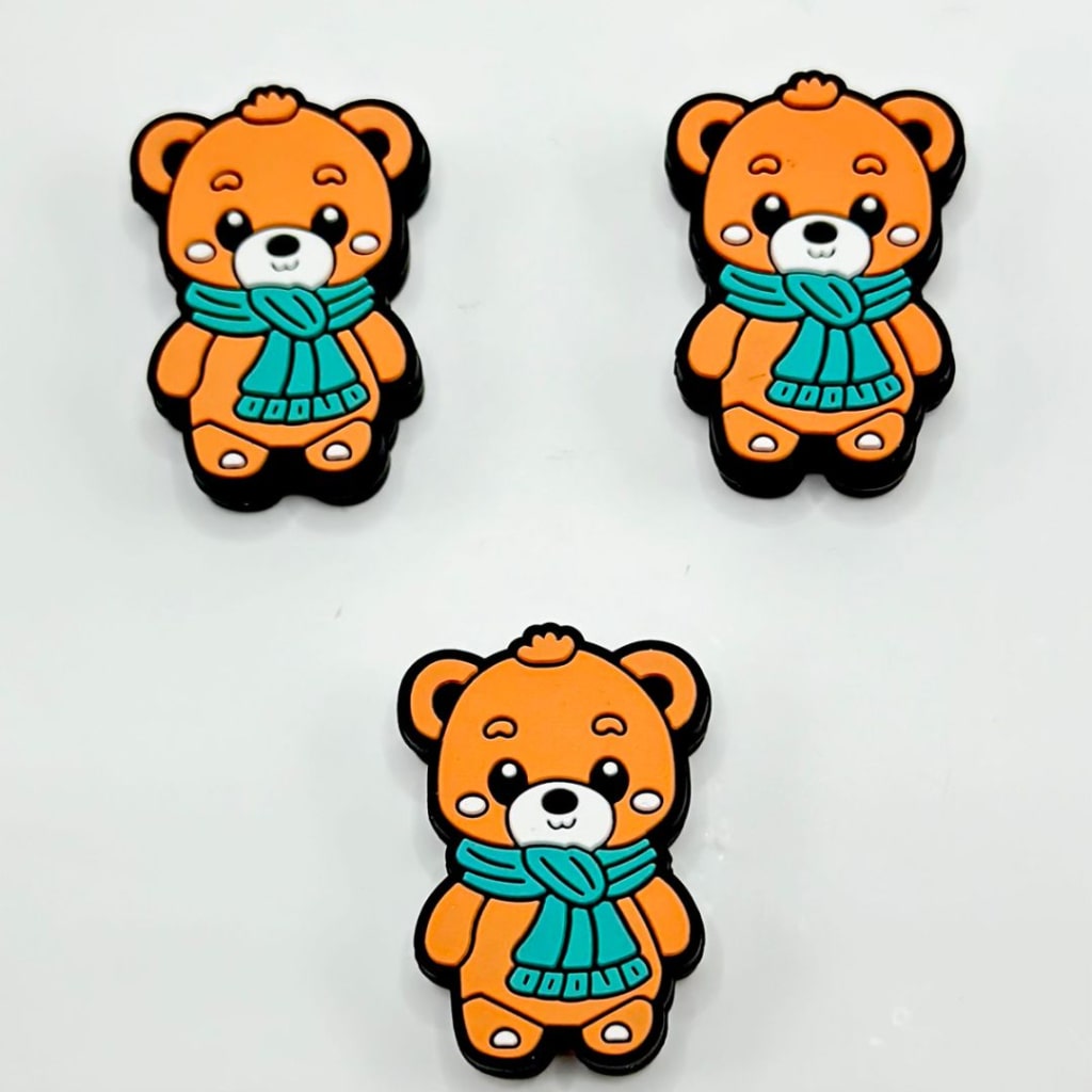 かわいいティール色のスカーフを巻いた小さなかわいいオレンジ色のクマのシリコン製フォーカルビーズ
