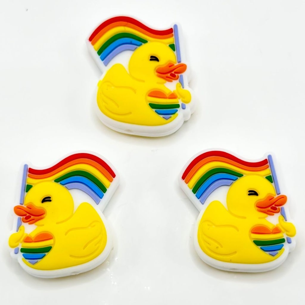 虹色のハートを持つかわいい黄色いアヒルの子が虹色の旗を持ったシリコン製フォーカルビーズ