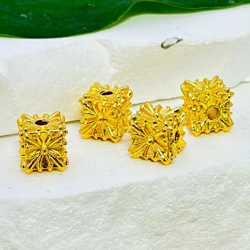 ミニキュートゴールド合金キューブスクエアビーズ(花柄)8mm
