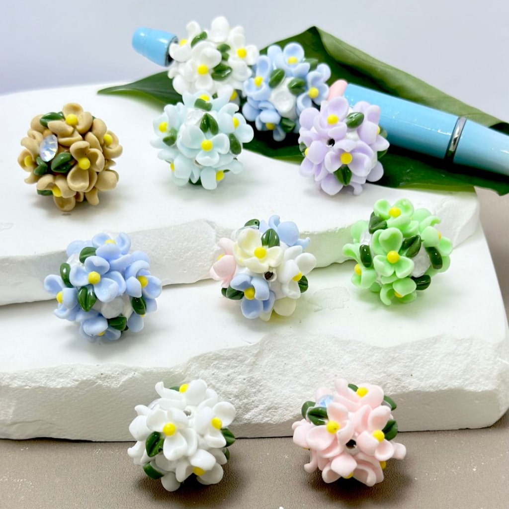 湾曲した花びらを持つマルチカラーの花、光沢のあるジルコンラインストーン粘土ビーズ、20MM、説明をお読みください