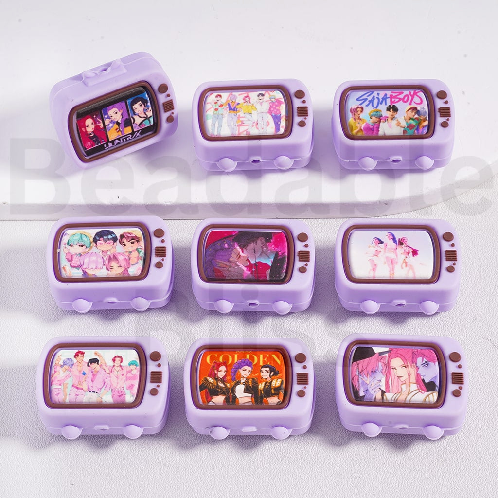 Silicone Focal Beads 3D Mini Cute Saj Bo Hunt Series Television, Purple Color, Random Mix