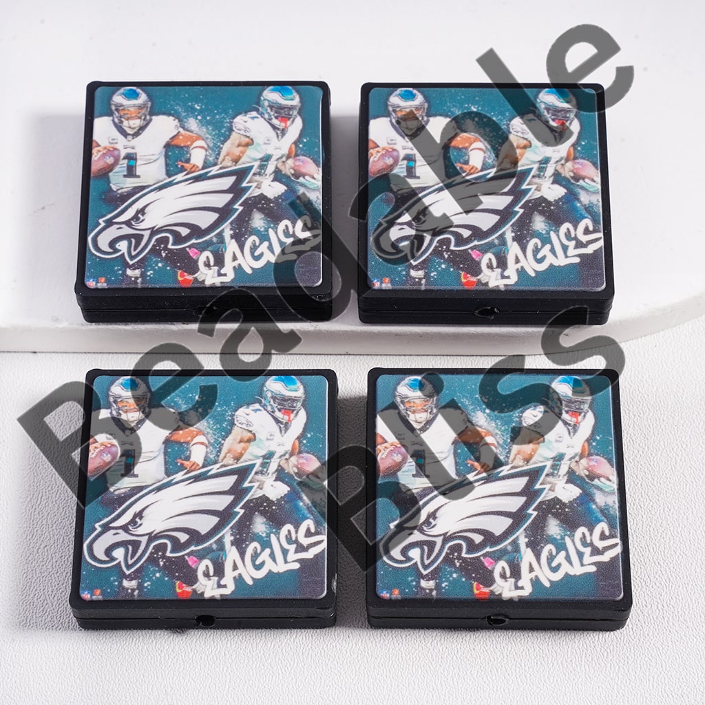 Silicone Focal Beads American Football Philadelphia, Green Flat Square Shape