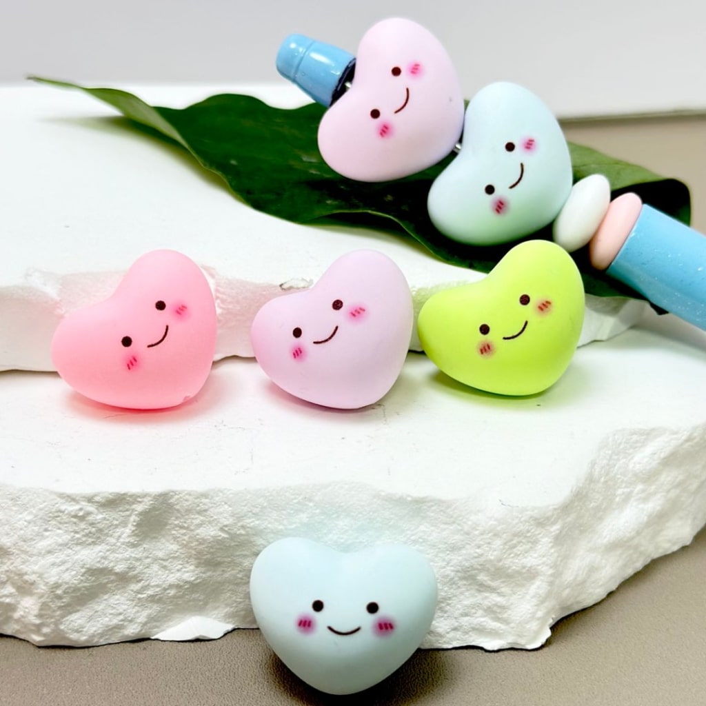 単色スマイルフェイスハートアクリルビーズ、約23×19MM