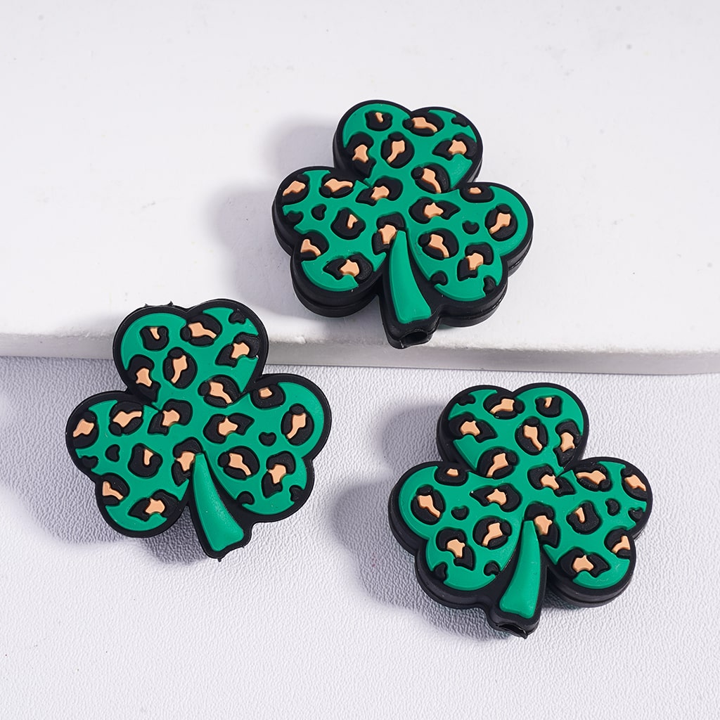 聖パトリックデーの幸運の葉のクローバー、シャムロック、ジャガープリントのシリコンフォーカルビーズ