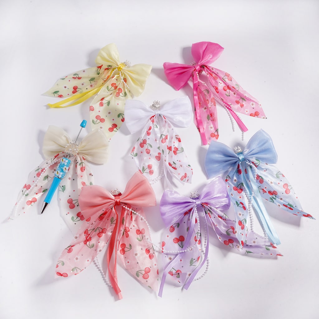 Sugar Acrylic Beads with Fancy Silver Crown White Pearls Shiny Cone Shape Rhinestones Fabric Bowtie Pearl Chains Accessories, Random Mix