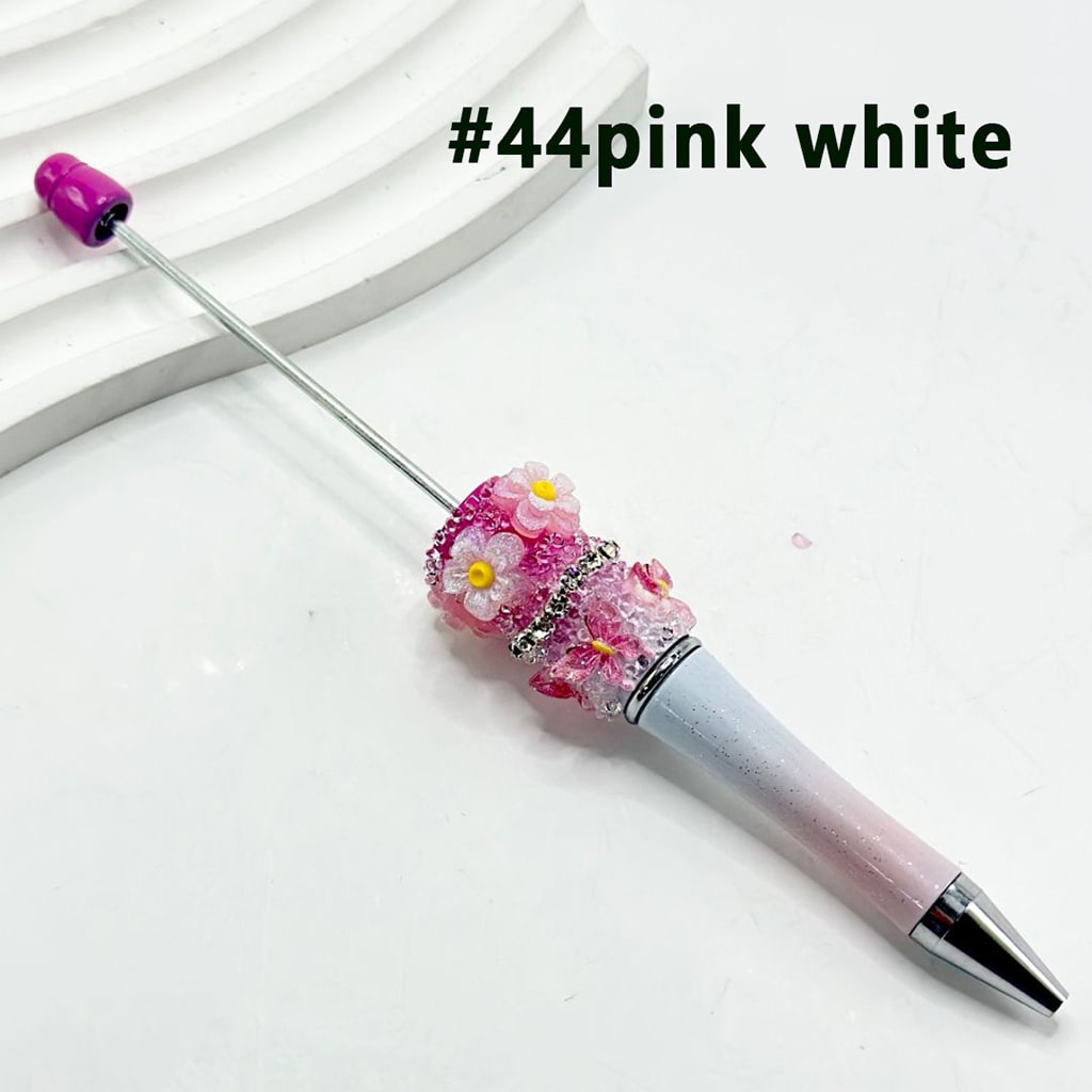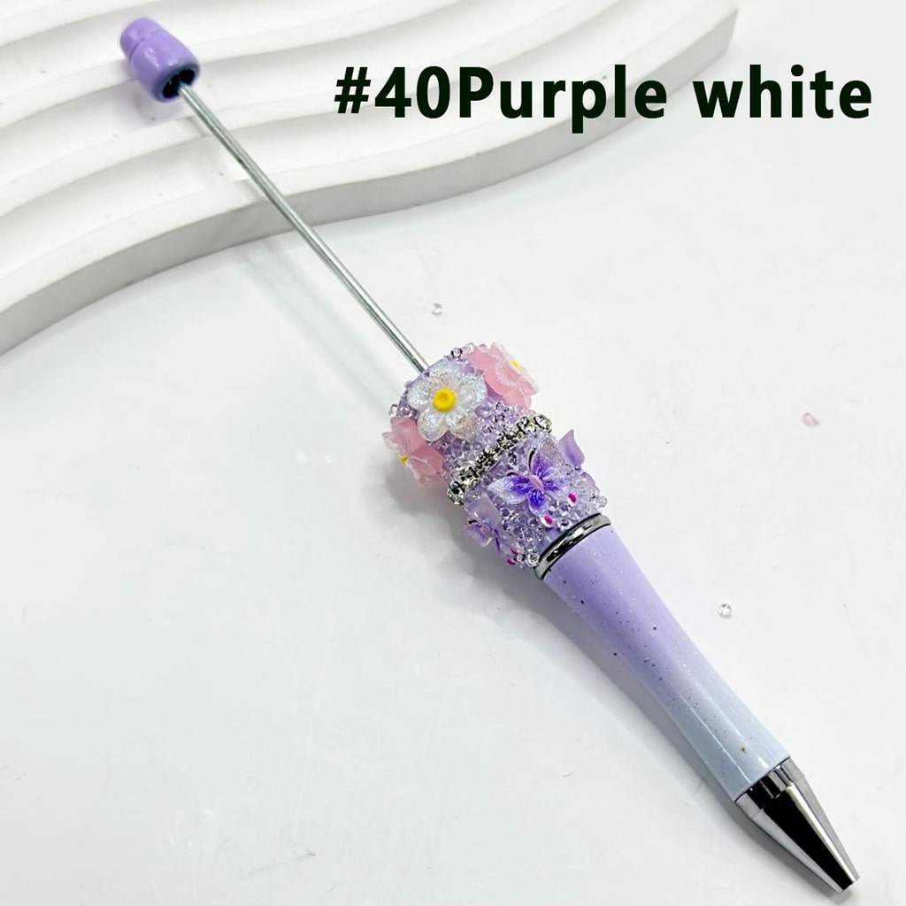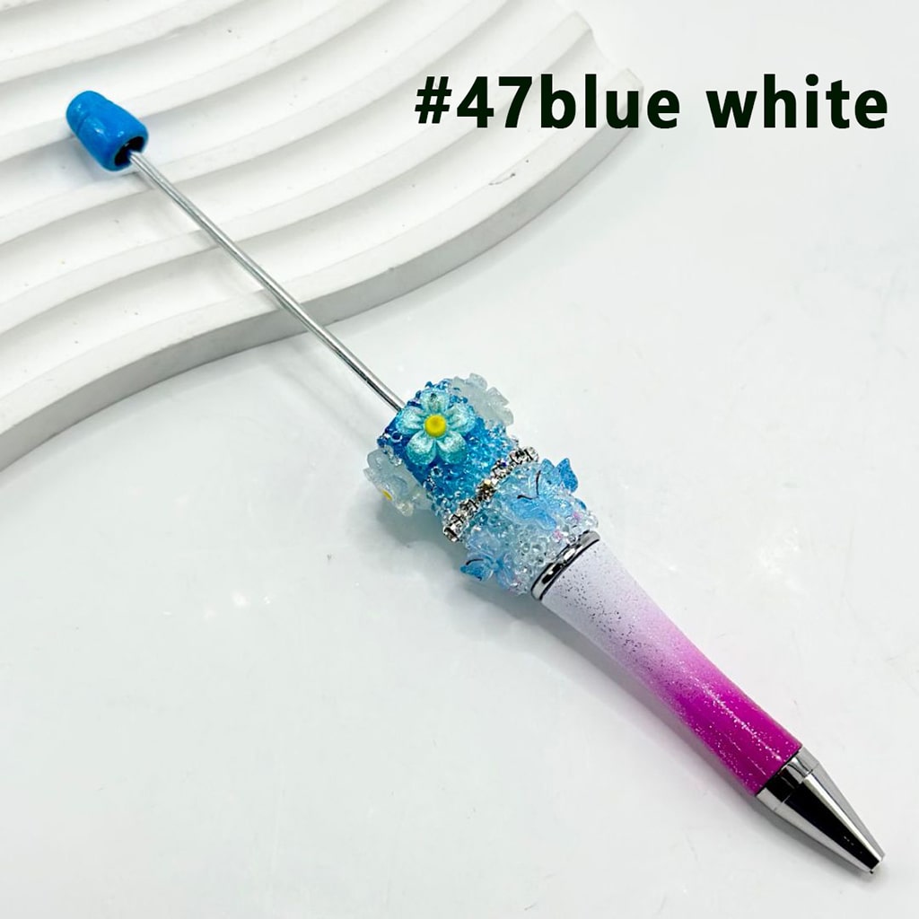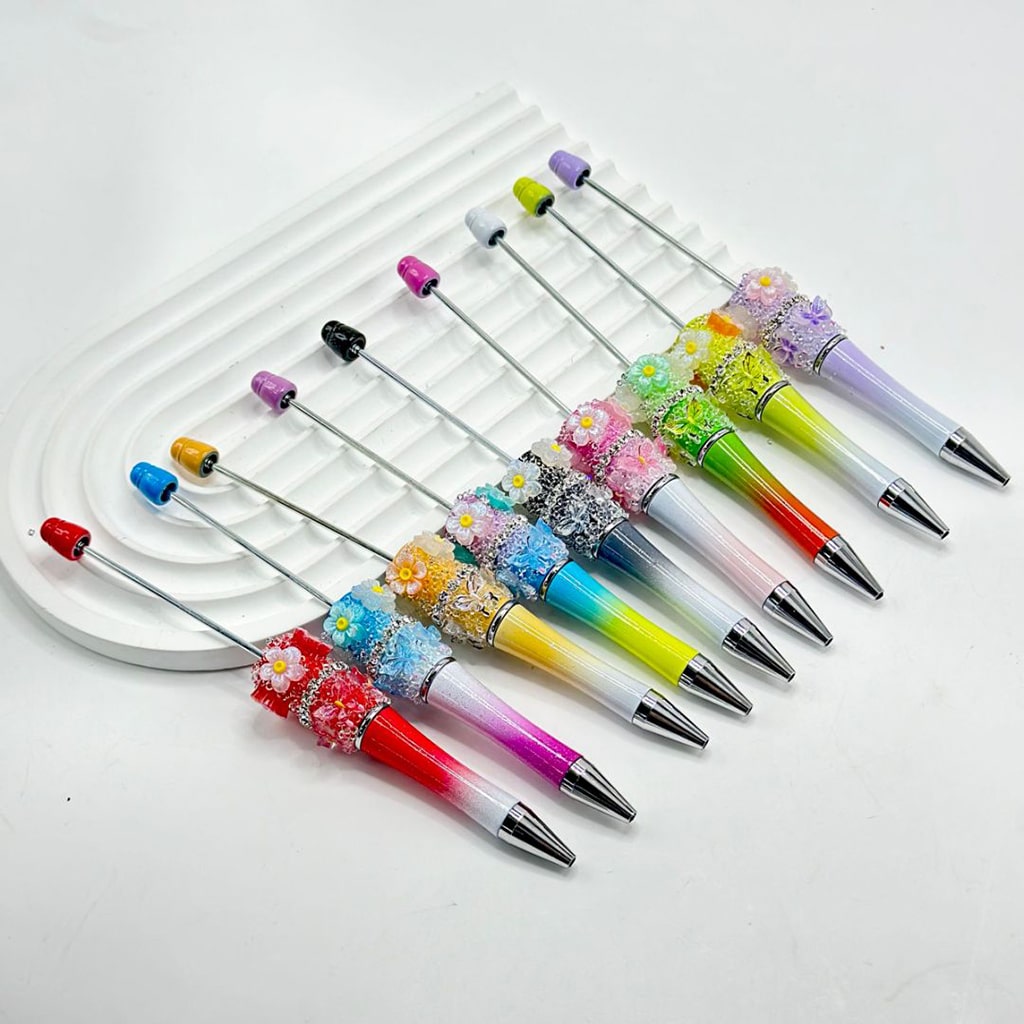 シュガーラップビーズペン(グラデーションカラー、樹脂製小花、蝶、透明ラインストーン付き) |