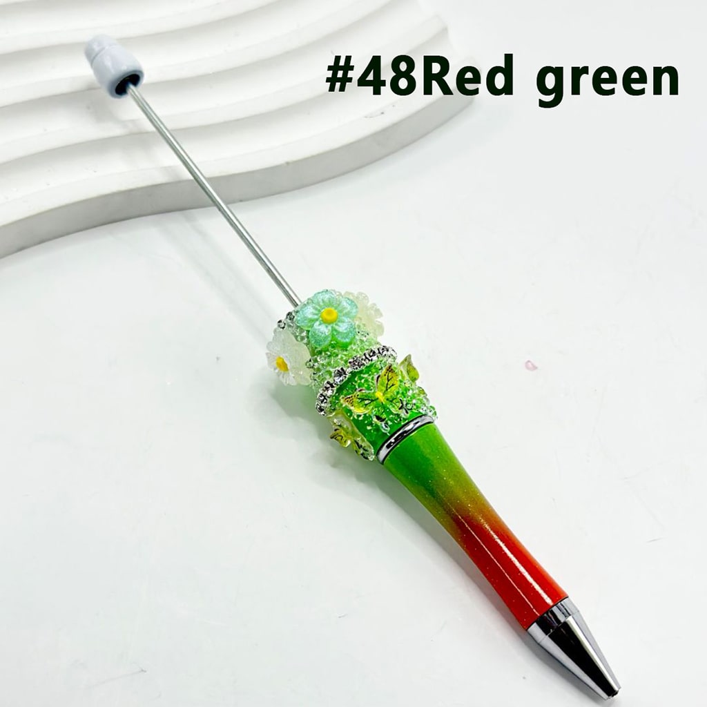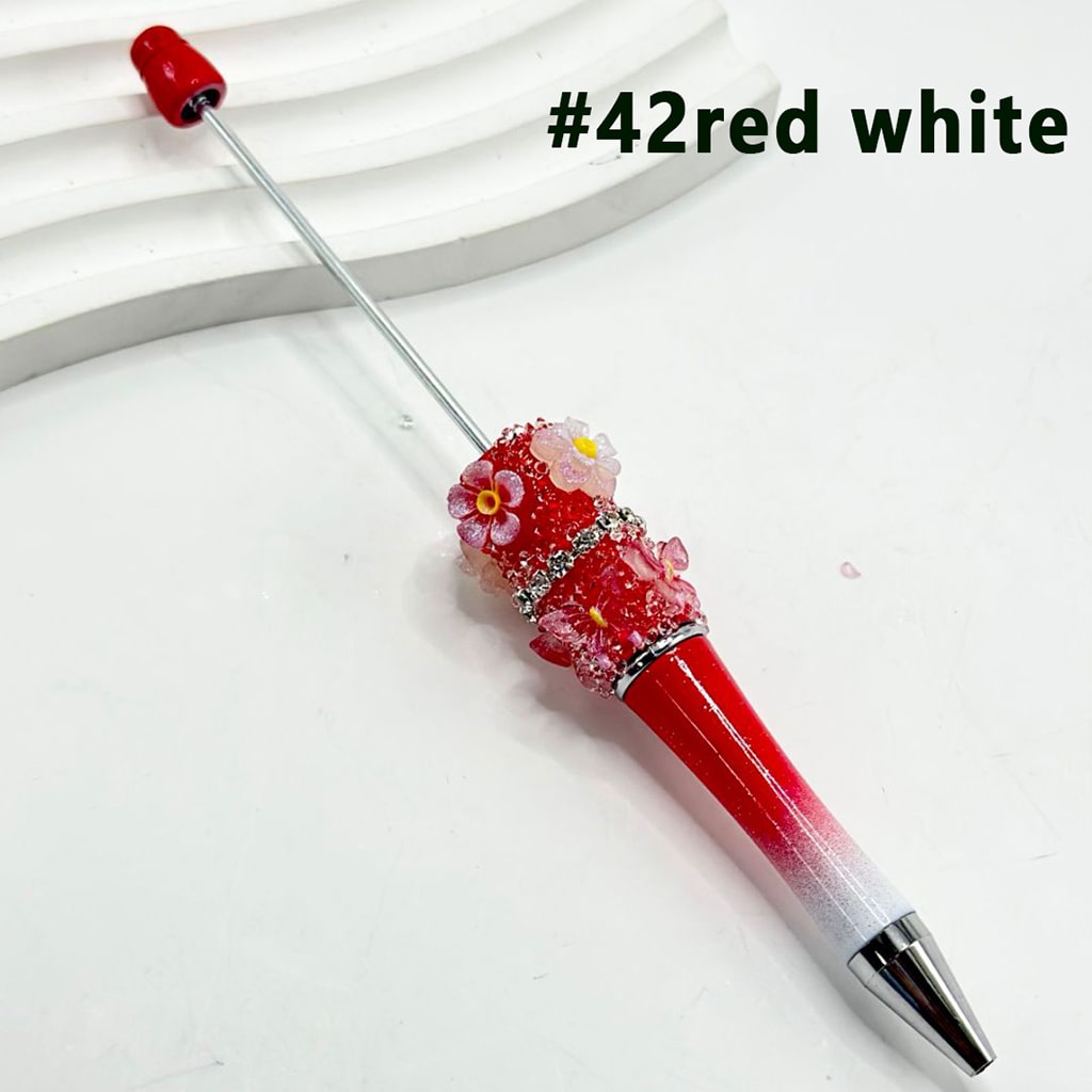 シュガーラップビーズペン(グラデーションカラー、樹脂製小花、蝶、透明ラインストーン付き)