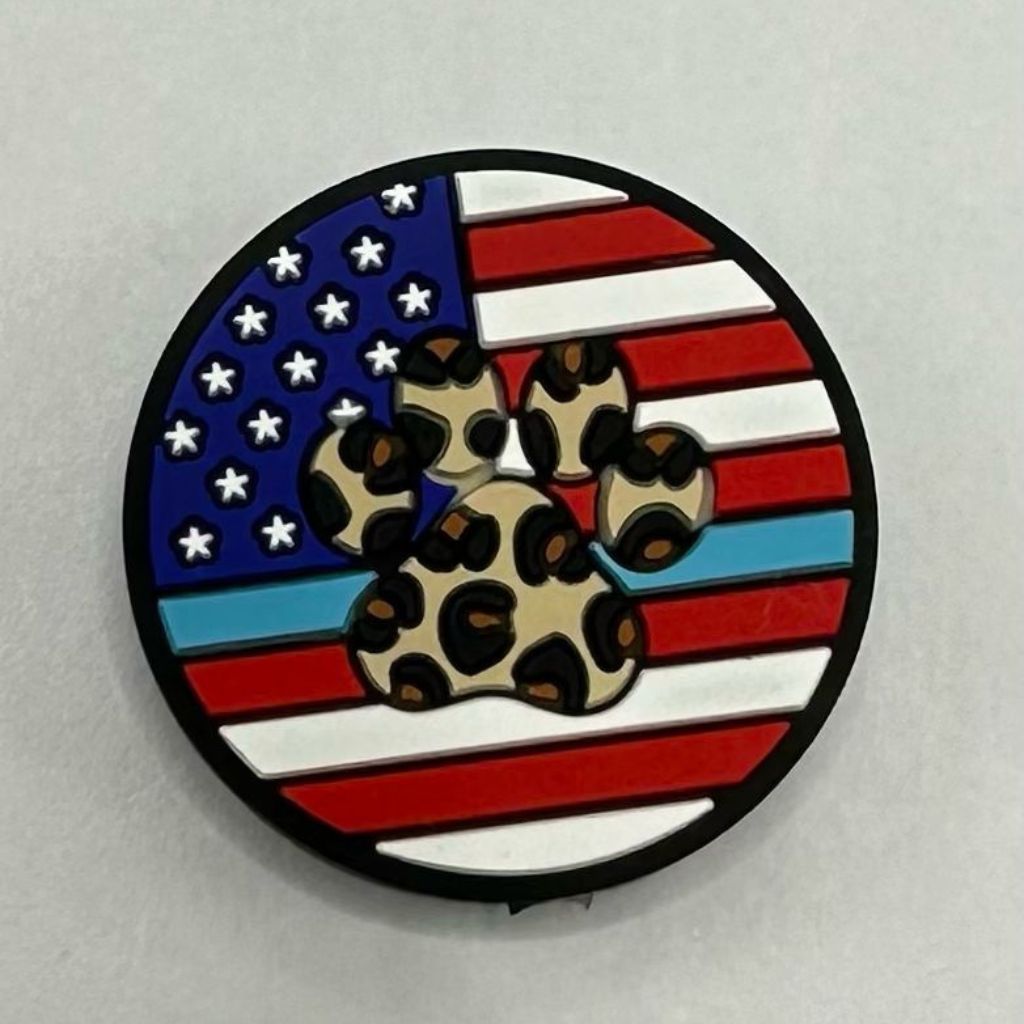 犬の足跡、猫、ジャガー、チーター柄のペット用アメリカ国旗愛国心あふれるシリコン製フォーカルビーズは、アメリカの誇りと愛犬への愛情を融合させ、愛国的な行事にも、普段使いのペットアクセサリーにもぴったりです。このユニークなビーズは、ペットへの愛情を称えながら、あなたの愛国心を表現します。